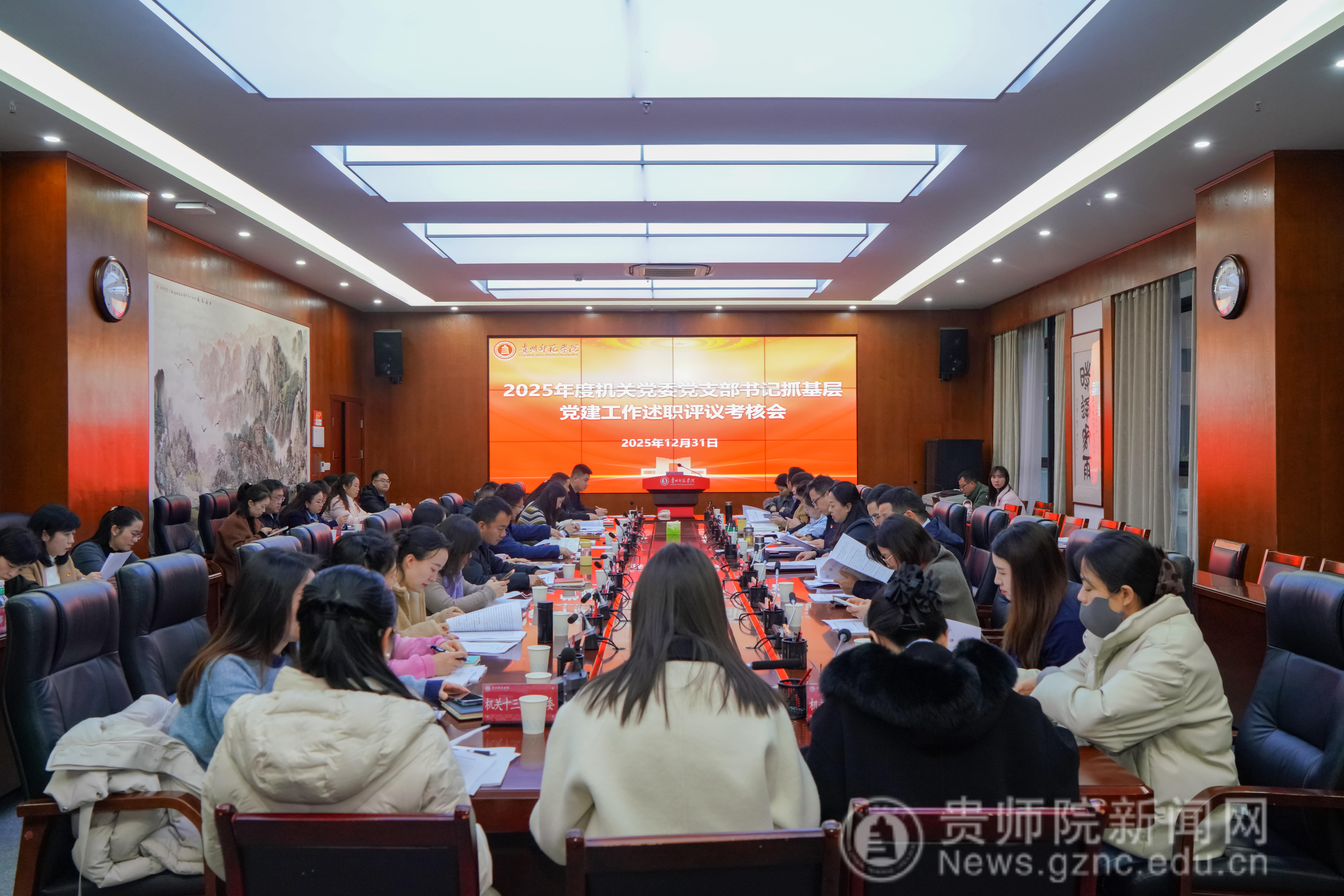 本网讯 为深入学习贯彻习近平新时代中国特色社会主义思想,全面贯彻党的二十大和二十届四中全会精神,压实基层党建工作责任,提升机关党支部建设质量,12月31日,机关党委在信息楼二楼会议室召开了2025年度党支部书记抓基层党建工作述职评议考核会。校党委副书记高勇出席会议并作点评讲话。机关党委委员、机关党委全体党支部书记、各党支部委员代表和二级学院代表参会。会议由机关党委书记张瑶主持。