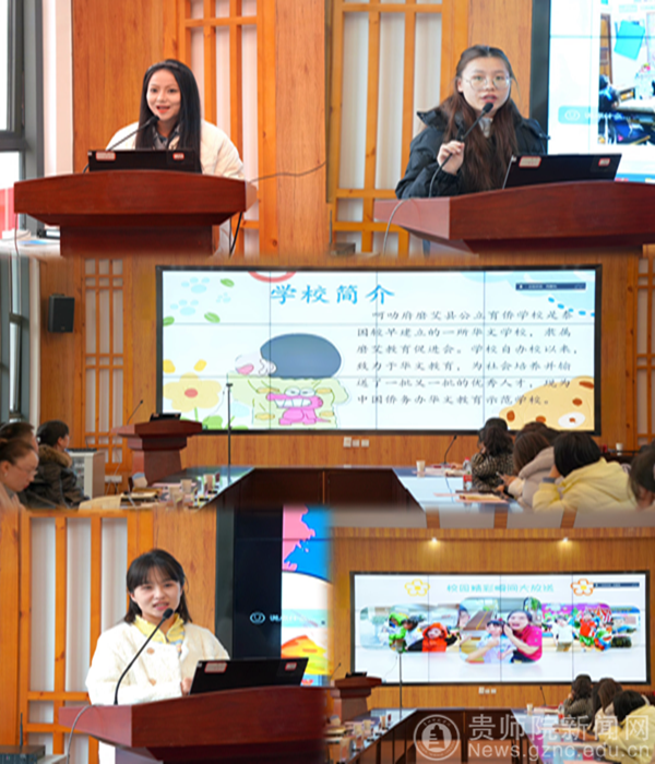 会议伊始,2024年赴泰实习生依次上台,就各自的实习经历进行了总结汇报。他们从不同角度讲述了在泰国实习期间的所见所闻、所学所得,以及面临的挑战与成长,为在场的师生提供了宝贵的经验借鉴。他们不仅在教学上取得了显著的成绩,更在文化交流上做出了积极的贡献。通过一系列丰富多彩的文化活动,他们让泰国学生更加深入地了解了中国文化,也为中泰友谊的深化贡献了自己的力量。