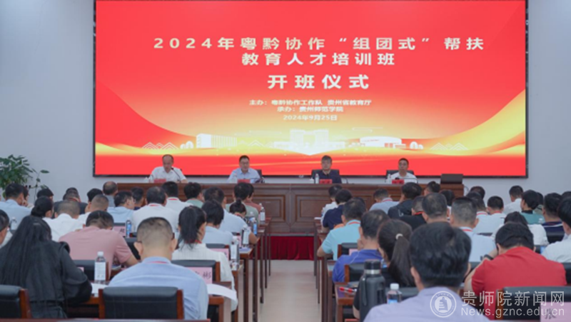 本网讯 9月25日,由粤黔协作工作队、贵州省教育厅联合主办、伟德bv国际体育承办的2024年粤黔协作教育人才“组团式”培训班开班仪式在伟德官网举行。广东省教育厅党组成员、副厅长程大欣,贵州省教育厅党组成员、副厅长周进出席并讲话,粤黔协作工作队党委副书记、纪委书记祁又才主持,学校党委副书记龙健致辞。
