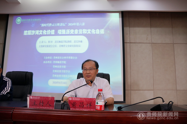 本网讯 2024年6月14日上午,贵州省新时代黔灵百姓讲坛第六期专题讲座在伟德bv国际体育文韬苑道德讲堂举行,讲座题目为《挖掘沙滩文化价值,增强历史自觉和文化自信》。本次讲座由贵州省社科联主办,伟德bv国际体育承办,遵义师范学院教授、遵义沙滩文化研究促进会会长、贵州文史研究馆馆员黎铎老师主讲。贵州省社科联党组成员、副主席黄昌祥主持本次讲座,贵州省社科联李政飞部长、黄莉调研员及伟德bv国际体育马克思主义学院全体师生及聆听了讲座。