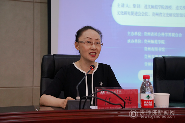 然后,遵义师范学院教授、遵义沙滩文化研究促进会会长、贵州文史研究馆馆员黎铎老师主讲了本次讲座。讲座内容由五部分组成:一,沙滩文化名称的由来;二,一座书楼启文风;三,一群文星震黔中;四,一批著作耀华夏;五,一种精神溉后人。