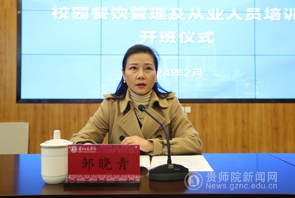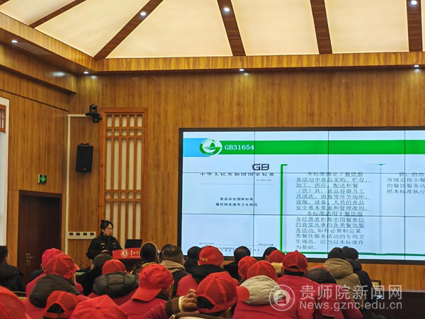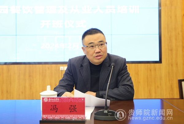 本网讯 2024年2月23日,为进一步提高食堂、商超美食城食品安全工作水平和安全生产意识,提升餐饮从业人员熟练掌握食品卫生和消防安全相关法律法规知识,自觉在实际工作中遵守法规和食品卫生操作规范,伟德官网在印山书院二楼会议室召开了校园餐饮管理及从业人员培训开班式及培训会。校党委委员、副校长邹晓青,贵阳市乌当区市场监督管理局高新分局局长冯强及相关同志,伟德bv国际体育后勤服务有限公司,食堂、商超负责人及从业人员共128名参加会议。会议由后勤处处长干正洋主持。