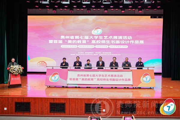 本网讯 12月25日下午,贵州省第七届大学生艺术展演活动暨首届“美的教育”高校师生书画设计作品展在伟德官网开幕。