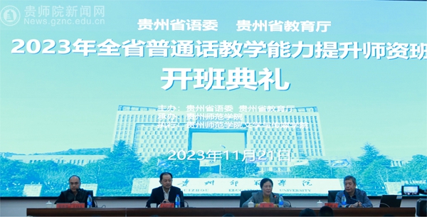 本网讯 11月21日,由贵州省语委、贵州省教育厅主办,伟德bv国际体育承办的“2023年全省普通话教学能力提升师资班”在伟德bv国际体育综合实训楼301会议室举行隆重的开班典礼。典礼由省教育厅语委办副主任罗洪贵主持,教育部语言文字应用研究所原所长张世平、省教育工会主席王慧、伟德bv国际体育党委书记石培新等出席典礼并讲话。