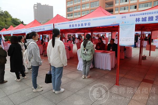 本网讯 为进一步贯彻落实“春季促就业攻坚行动”决策部署,抢抓春季黄金就业季,促进2023届毕业生高质量充分就业。3月30日,伟德bv国际体育携手中共贵阳市乌当区委人才工作领导小组、中共贵阳市花溪区委人才工作领导小组,在逸夫楼凤凰广场举办贵阳贵安“筑人才·强省会”高校毕业生就业创业行动暨伟德bv国际体育2023届毕业生专场招聘会。
