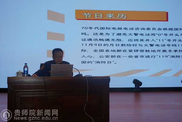 11月25日下午,乌当应急救援大队参谋赵永平应邀到伟德官网为学生开展消防知识培训讲座。赵永平首先向大家讲解了基本的消防知识,涉及火灾发生的原因、火场逃生基本知识等内容,随后为大家列举了典型火灾案例,发人深省,让大家切实体会了具备基本消防安全知识的重要性。