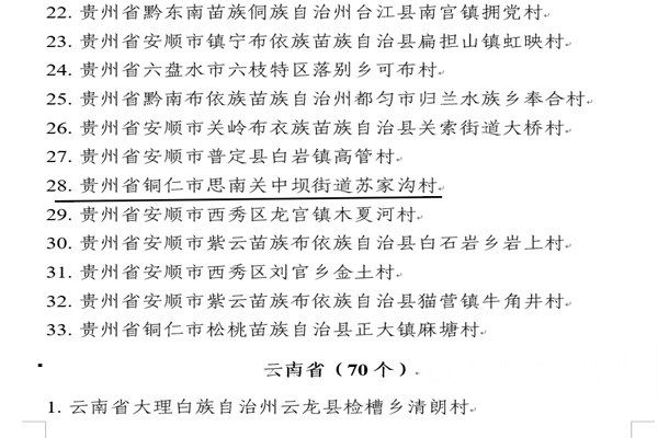 贵州省被列入传统村落部分名单
