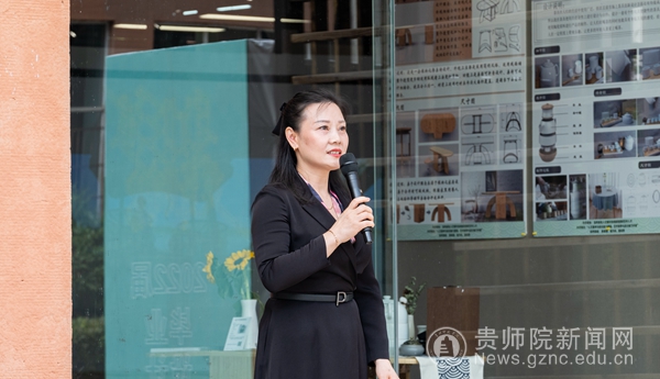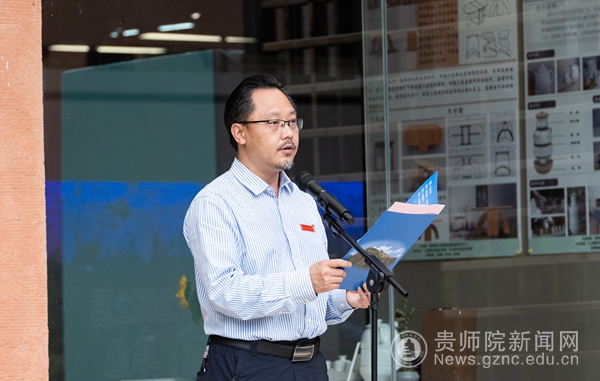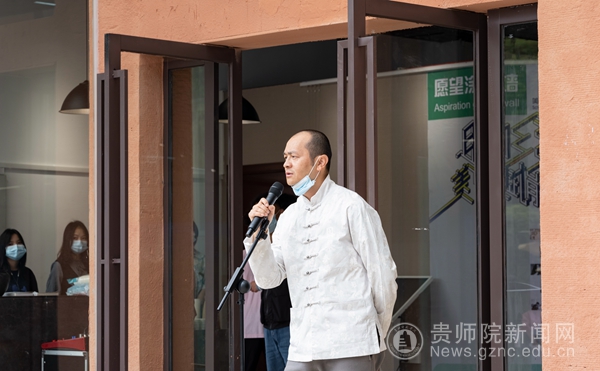贵州未名堂企业品牌管理咨询有限公司董事长陈思岷作为嘉宾代表对此次以“助力乡建,美育赋能”为主题的毕业展表示充分赞许,他简短回顾我国关于“乡建”发展历程和艺术参与乡村振兴的必要性,希望同学们立足本土资源,抒写大地、抒写人生。