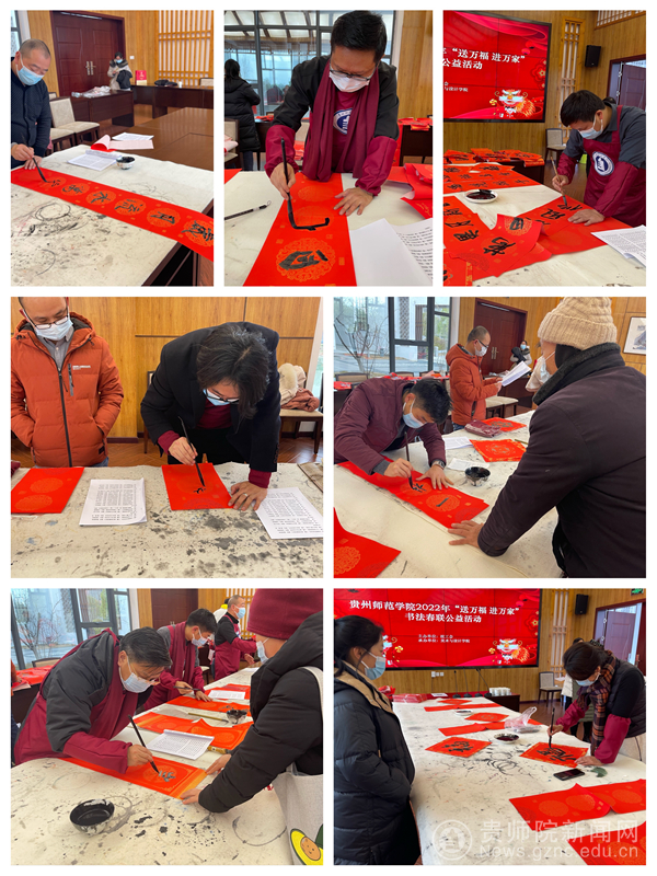 “纸墨飘香,春联送喜”伟德官网书画艺术研究院的石含洲、安毅、谢安辉、杨光学、白瑞荣、李亦扬、杨辉等七位书画家以饱满的热情,在现场挥洒笔墨,一幅幅字形不一,风格迥异,写满祝福的春联跃然纸上,即喜庆又充满福气。按照疫情防控相关要求,分批入场参加活动的教职工及离退休老师们拿到书画家们赠送的春联、福字后,都喜笑颜开,在感受喜庆氛围的同时也体会到了中国书法传统文化的魅力,现场浓浓的新年气氛扑面而来。