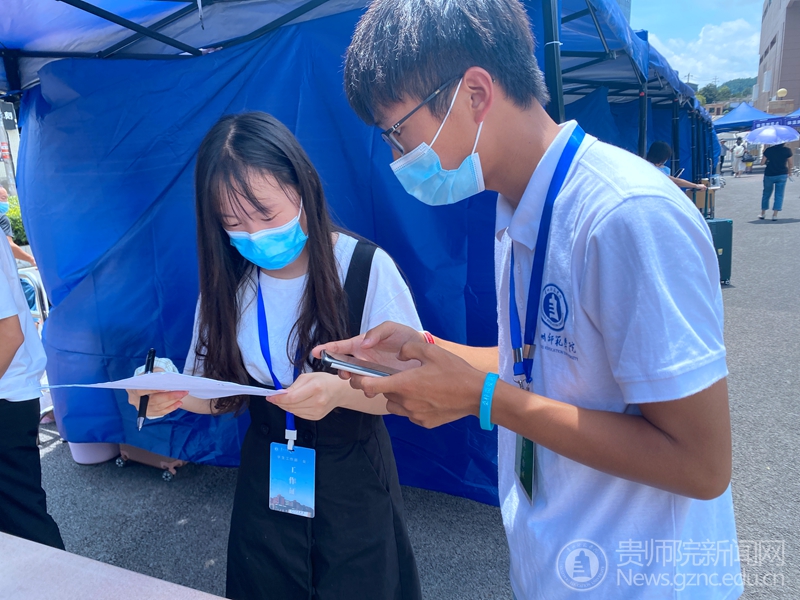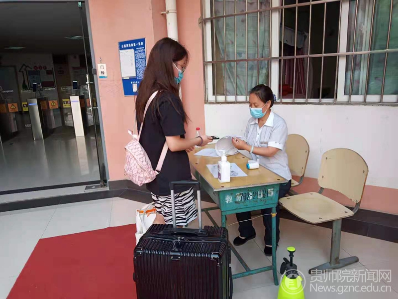 返校期间学生秩序井然,学校为返校生在校门口处开辟了搭建了16个学院的审核点和学生服务站以及2组通道。各学院选派的工作老师和志愿者对返校生进行“三码两证一承诺”和部分核酸检查情况进行一一查验,并对携带行李进行消杀后,学生按地面标识的“一米线”排队进行体温检测,随后进行身份核验及手部消毒。在宿舍门口,宿舍管理员还要再对学生进行有关信息状况的核验,核验无误后,学生才能正式进入宿舍。