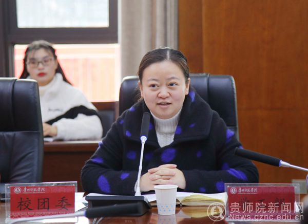 校团委副书记罗荣说高校共青团的职责就是服务学校中心工作,服务青年成长成才。在介绍了伟德官网共青团的基本情况后,她说到,团委是培养干部的摇篮,应当做到聚是一团火,散是满天星。她指出,共青团的工作重心应当围绕思想育人、实践育人、文化育人、服务育人、组织育人。
