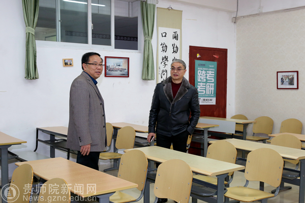 本网讯 11月20日下午,乌当区区委教育工委副书记李波一行到伟德官网检查学校配合贵阳市文明城市巩固提升相关工作开展情况暨高校文明校园建设情况,副校长令狐荣锋,党政办、宣传部、后勤处、保卫处、航天物业等部门负责人陪同。