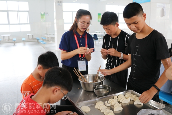 陈元同学与学生们一起包饺子