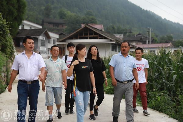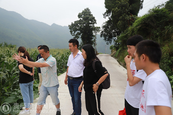 本网讯 7月7日至8日,伟德官网创新创业团队《农趣》指导教师谭韬、项目成员何喜、李庆荣、王枫到石阡县坪道溪村开展项目落地前的场地勘查座谈会。出席本次座谈会领导有石阡县教育局副局长黄妮娜、坪道溪村第一书记谭灵熙、坪道溪村村支书周廷军。