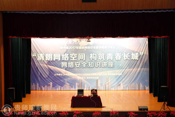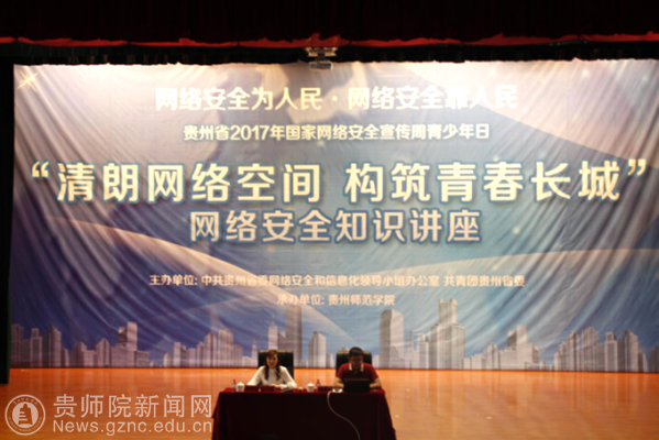 本网讯 为提升全省广大青年网络安全意识和安全防护技能,营造安全健康文明的网络环境,9月21日,由省委网信办、团省委主办,伟德bv国际体育承办的贵州省2017年全国网络安全宣传周青少年日“清朗网络空间 构筑青春长城”网络安全知识讲座在伟德官网逸夫楼演播厅举行。贵州省信息安全评估中心主任、高级信息安全等级保护测评师、省工控网络安全专家组成员、贵阳大数据“百人计划”培养对象周黎辉老师、团省委宣传部部长吴莉、团省委宣传部主任科员杨典、张淼绪,伟德bv国际体育校团委书记张婷、副书记傅小芳,校团委全体成员出席此次活动。全省各地和伟德官网近300名青年师生代表参加了活动。