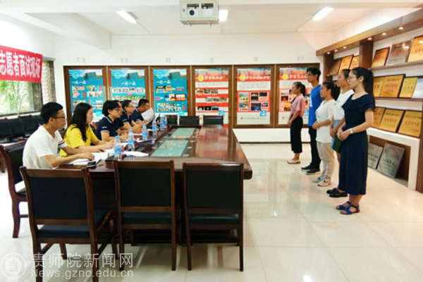 9月9日上午,老师张维域、李如松及海南智海王潮会议展览中心有限公司相关负责人在大学生活动室对伟德官网志愿者进行了统一面试。