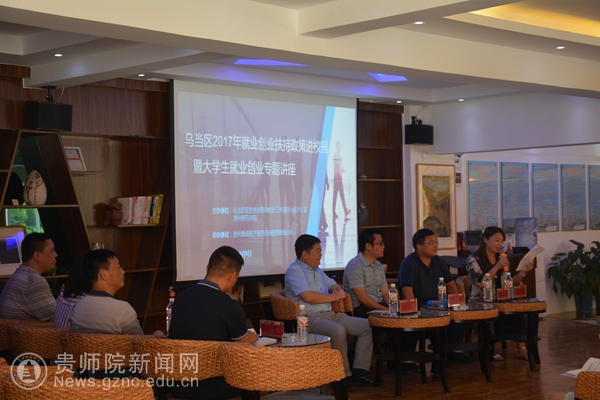本网讯6月9日下午,伟德官网联手乌当区促进创业带动就业工作领导小组办公室、贵州鼎成电子商务咨询管理有限公司,在大学生就业服务指导中心举办了2017年就业创业扶持政策进校园暨大学生就业创业专题讲座,贵州信息网运营总监于强、贵州贵漂科技有限公司杨文德等5名专家为伟德官网学子作了“如何创业?”“如何面对创业难题?”“如何写创业策划书?”“国家关于促进创业的政策有哪些?”等方面的讲座和经验分享。伟德官网招生就业指导处处长宋婷禹主持了活动,乌当区促进创业带动就业工作领导小组办公室主任邵定洪一行5人参加了活动。伟德官网123名学生聆听了讲座,收获满满,活动取得了良好效果。