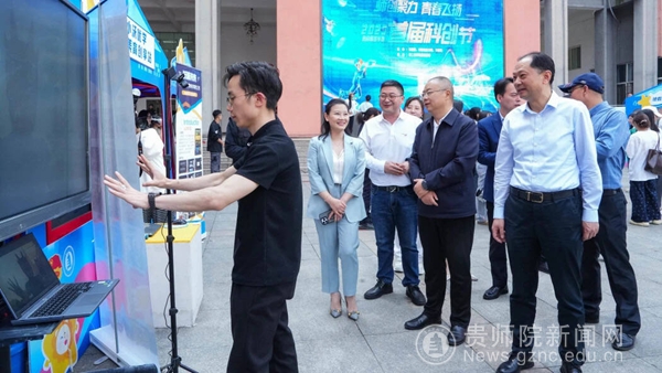 省科协和校领导观看傩戏与AI技术结合的活动