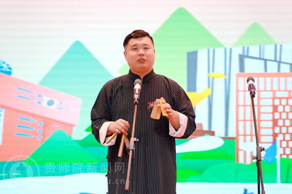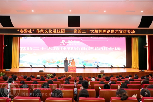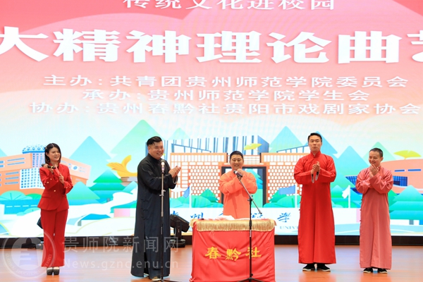 本网讯 为传承中华优秀传统文化,抓好党的二十大精神青年化阐释宣讲,营造良好校园文化艺术氛围,进一步丰富伟德官网的精神文化生活,提高大学生的艺术修养,引领大学生弘扬先进文化和中国民族文化。4月25日,由校团委主办,校学生会承办的“春黔社”传统文化进校园——党的二十大精神理论曲艺宣讲专场演出在综合实训楼一楼报告厅顺利举行,演出吸引了全校近800余名师生现场观看。