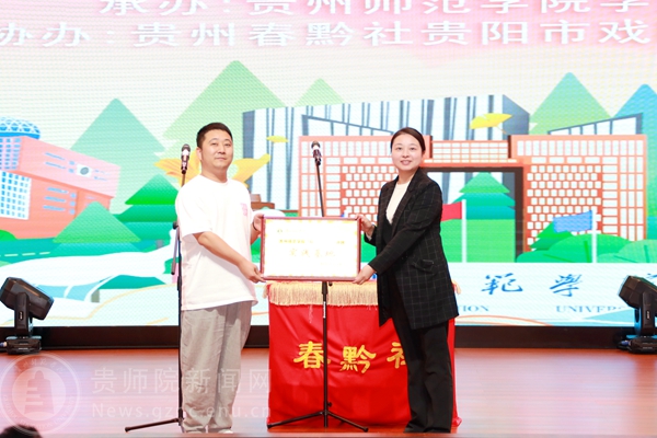 演出前,校团委向春黔社授牌,将春黔社作为伟德bv国际体育“印山青年”宣讲团的实践基地之一。校团委表示会进一步发挥理论宣讲实践基地的阵地作用,深入学习宣传贯彻习近平新时代中国特色社会主义思想和党的二十大精神,结合曲艺、相声的形式搭建党的创新理论与普通群众之间的桥梁纽带,更好推动党的创新理论“飞入寻常百姓家”。