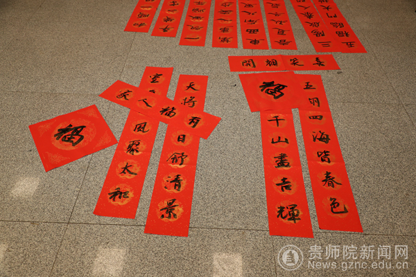 本网讯“无联不成春,有联春更浓”。为迎接新春佳节、弘扬传统文化,1月11日上午,校工会、美术与设计学院在校图书馆一楼大厅联合开展了“送万福进万家”书法公益活动,现场为教职工群众送上新年的祝福。校工会主席许丽君、美术与设计学院党委书记石含洲、院长聂森、党委副书记赵玉、美术与设计学院老师白瑞荣、杨光学、安毅、杨辉、美术与设计学院学生张家瑜参加此次活动。
