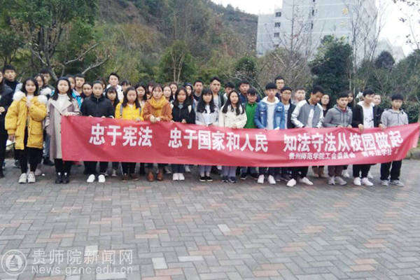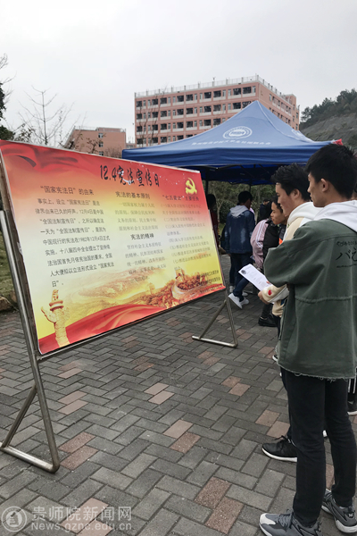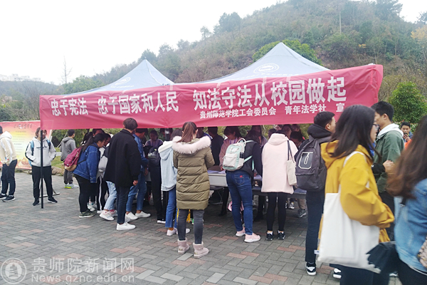 本网讯 12月4日在伟德官网鉴湖旁,由校工会主办、青年法学社承办,组织开展了“12.4”宪法宣传活动。活动旨在“弘扬宪法精神,建设法制师院,树立宪法意识,维护宪法权威”。本次活动主要是为了学习贯彻党的十九大精神,维护宪法权威,积极宣传与广大教职工利益密切相关的法律法规。