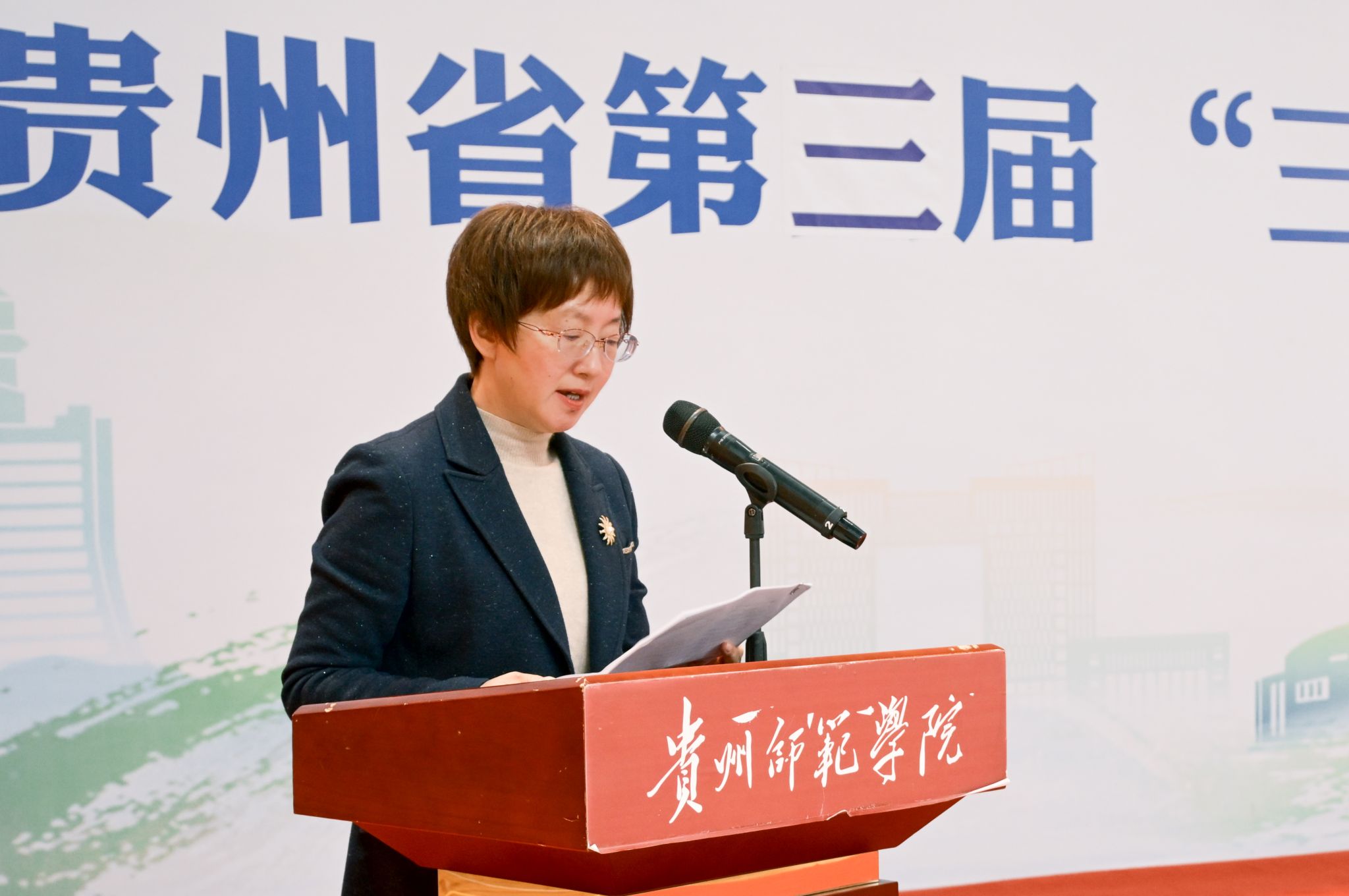 本网讯 “写好规范字,说好普通话。我们将言传身教,做好学生的引路人,争做新时代好教师。”11月15日,贵州省第三届“三字一话”应用能力大赛在伟德官网圆满落幕,来自全省九个市(州)中小学教师及17所本(专)科院校学生共168名选手共同角逐胜负,全方位展示教学基本功与职业风采。贵州省委教育工委委员、省教育工会主席江山出席并讲话,校长王蜀黔、教育厅语委办主任张理琳参加活动,校党委常委、副校长潘运致辞。