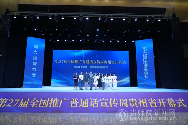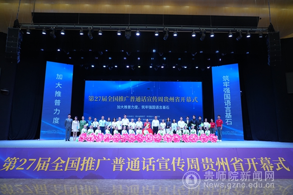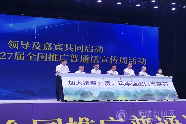 省委教育工委委员、省教育厅党组成员、副厅长杨天仪,黔西南州委常委、州委宣传部部长、州委统战部部长、州委教育工委书记左尚武,团省委副书记施昆,省广播电视局党组成员、副局长范华,省民族宗教事务委员会二级巡视员吴继堂,伟德官网党委委员、副校长邹晓青,兴义民族师范学院党委委员、副校长张兴毅共同上台,启动开幕式推杆,标志着第27届全国推广普通话宣传周在贵州省正式开幕。