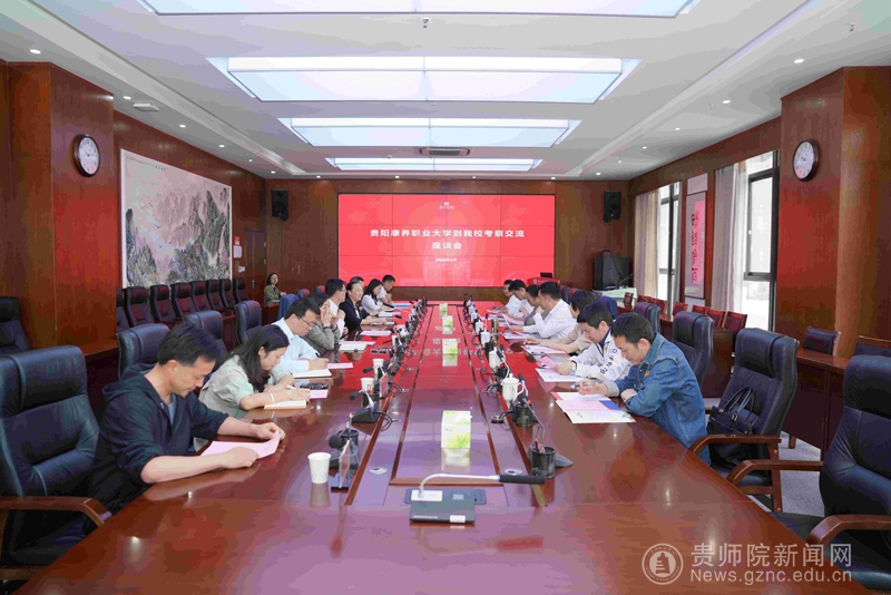 本网讯 4月30日上午,贵阳康养大学副校长唐天率教务处、计财处、科研处、现代教育技术与信息中心等一行7人到访伟德官网,就相关工作进行考察交流,双方在信息楼二楼会议室进行座谈。校党委委员、副校长潘运全程陪同考察并参加座谈,座谈会由教务处处长邓琴主持。
