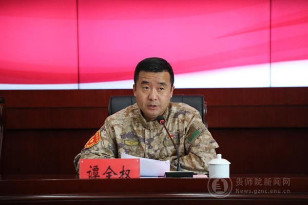 贵阳警备区大校政治委员王文建充分肯定了本次党建联学活动的主题、活动形式和学习效果。并以“新时代迈向新征程,新思想指引新航程,新作为展示新风貌”为重点,诠释了“新时代怎么看、怎么干”的实质内涵,引导青年学生增强国防观念,厚植爱国情怀,营造关心国防、建设国防、支持国防的良好氛围。激励师生围绕强国强军目标共同奋斗,要深入贯彻习近平强军思想,贯彻新时代军事战略方针,深刻把握全面推进国防和军队现代化的战略安排,深刻理解军民融合深度发展新格局,聚力打好实现建军一百年奋斗目标攻坚战。
