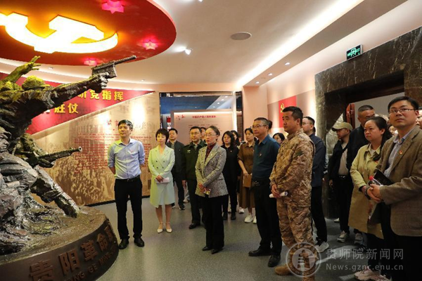 贵阳警备区动员处处长唐田陪同参观了贵阳革命军事展陈馆,伟德bv国际体育马克思主义学院、体育学院、音乐舞蹈学院、美术与设计学院党委班子成员、教师党支部教师党员代表参加了本次活动。