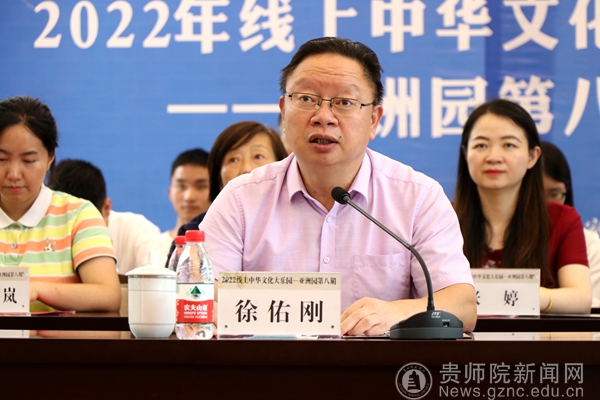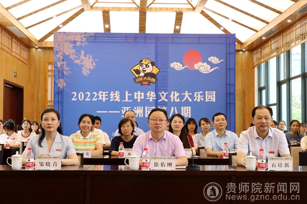 本网讯 7月22日下午,2022线上中华文化大乐园——亚洲园第八期闭园仪式在伟德bv国际体育印山书院举行。贵州海外联谊会副会长徐佑刚先生,伟德bv国际体育党委书记石培新、副校长邹晓青,贵州省侨务办刘菡女士、罗兴岚女士出席闭园仪式。