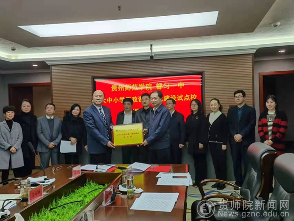 熊世桓代表学校与都匀一中胡立军校长签约共建教育实践基地并授牌