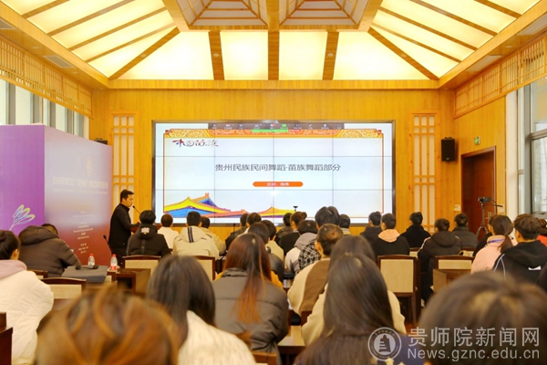 当日下午,本校音乐舞蹈学院舞蹈系主任肖伟副教授为学员们呈现了美轮美奂的贵州少数民族舞蹈。肖伟事前组织音舞学院学生精心录制了一场苗族舞蹈,课上,他以讲授融合展示的方式,从苗族舞蹈文化开始介绍,配合课堂组合展示,辅以录制的舞台画面,与众学员分享其艺术作品的创作心得。多彩的贵州民族舞蹈文化与肖伟的精彩讲解赢得了学员的阵阵惊叹。本阶段课程由伟德官网对外交流合作处副处长张彬主持。