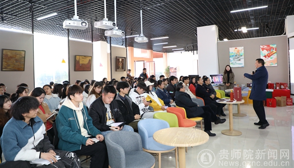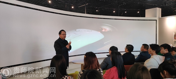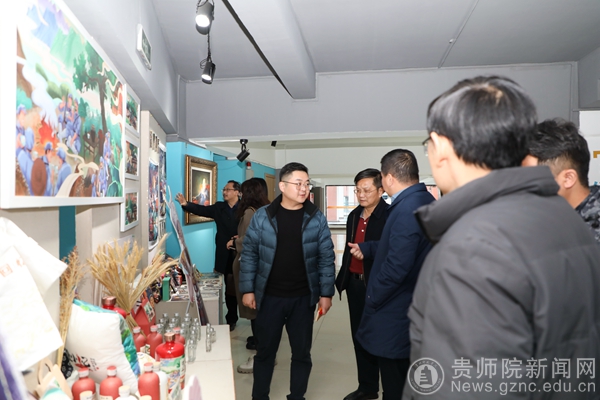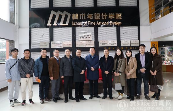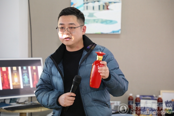 本网讯 为促进我院产教融合,协同育人的创新人才培养模式,激励师生树立“服务地方产业,助力乡村振兴”的理念,探索适应经济发展需要的应用型人才培养之路。在11月30日下午2:00,我院邀请贵州岩博酒业人民小酒销售有限公司总经理肖进春、产品设计主管徐思琪、平面设计主管刘丹等一行8人,在艺术实践工作坊参观师生展览作品,并与师生进行了互动交流。美术与设计学院院长聂森,院党委书记石含州,副院长路统宽,公共艺术系主任朱昌来、设计系主任邓鹭、邓林博士、许云老师以及产品设计专业、数字媒体艺术专业100余人参加交流会,交流会由朱昌来主持。
