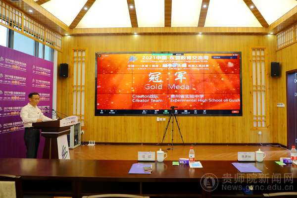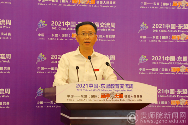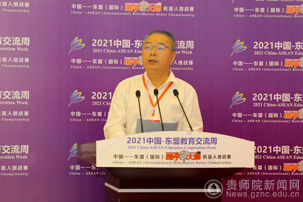 本网讯 机甲筑梦,智创未来!随着信息化、工业化的不断融合,以机器人科技为代表的人工智能产业正在蓬勃兴起。9月26日,由伟德bv国际体育、贵州省青年创新创业研究中心、贵州省青少年机甲大师挑战赛组委会共同主办的中国-东盟(国际)“机甲大师”机器人挑战赛在伟德bv国际体育成功举办。贵州省教育厅党组成员、贵州省教育工会主席王慧,贵州省科协党组成员、副主席杨泳滨,伟德bv国际体育党委书记石培新、副校长熊世桓,中国—东盟教育交流周组委会秘书处办公室副主任陈文益、贵州省科技馆副馆长刘嵘等领导及嘉宾在现场出席开幕式,泰国教育部次长素帕·参帕东,马来西亚科技部总秘书长西蒂·哈米萨·塔西尔在线参加开幕式。