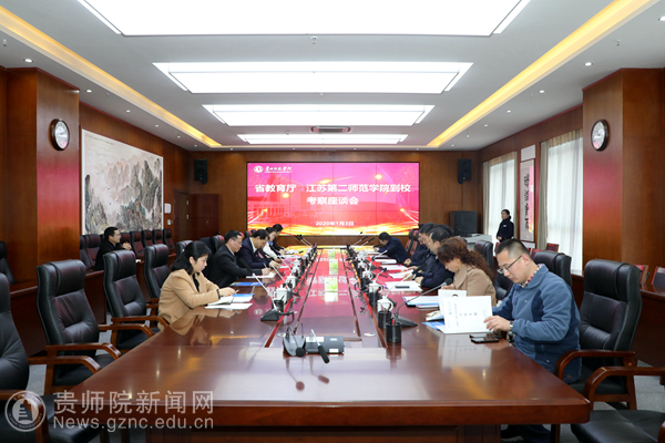 本网讯 1月3日下午,江苏第二师范学院党委书记王仁雷、党委副书记潘文,省教育厅副厅长徐国华等一行8人到伟德官网考察交流。校党委书记石培新,副校长郭文、熊世桓,党校办、科研处、教务处、教师工作处等相关部门负责人热情接待了来宾,并举行交流座谈。
