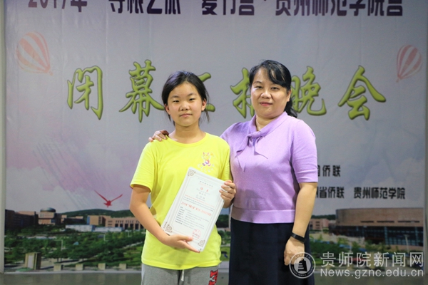 营员代表发言完毕,韦丹为营员颁发了证书。韦丹与陈亦桥代表伟德bv国际体育赠与两名领队具有贵州特色的礼物,共祝友谊长存。