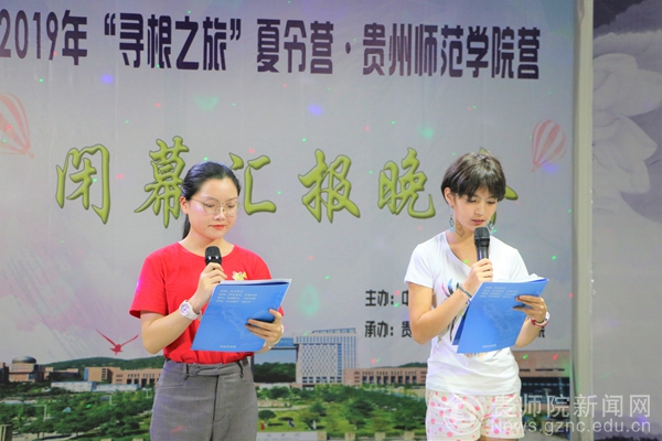 志愿者朱朵、营员蔡天美主持汇报晚会