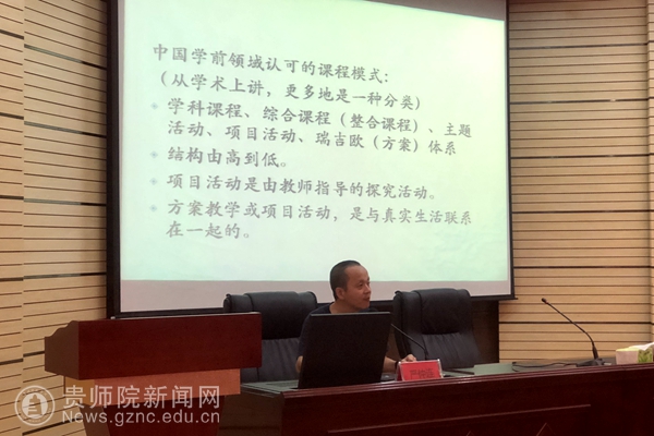 首先,刘红向大家介绍严仲连教授,并对严教授的到来表示热烈欢迎;接下来严教授从三个方面介绍了当前幼儿园课程,即从课程模式到幼儿园课程经典方案,确定幼儿园课程目标的依据,幼儿园课程实施的策略。严教授案例与理论相结合、深入浅出的讲述为在场师生呈现了一盘精彩纷呈的“精神大餐”。