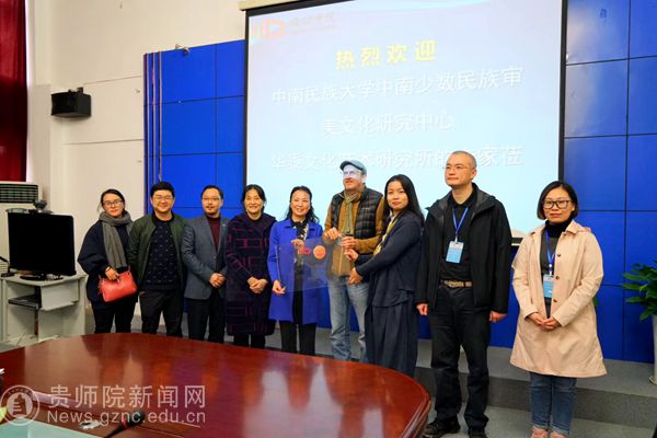 本网讯 继中南民族大学少数民族审美文化研究中心、华黍文化艺术研究所所长刘凡教授、德国著名艺术家、教育家、柏林工程艺术大学Walter Bergmoser教授等5位专家组成的民族地区留守儿童艺术治疗项目团队2月28日赴印江土家族苗族自治县实验小学开展留守儿童艺术治疗活动后。3月5日,专家组一行来到师范学院,在学校第一会议室进行了座谈并举行了挂牌仪式,会后由Walter Bergmoser给设计学院全体师生做了一场生动有趣的讲座。