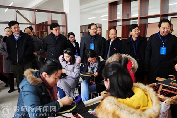 会前,与会人员对铜仁学院转型发展的五个代表点进行了现场观摩。主要观摩了铜仁学院应用转型的“四转一双创”,即人才培养转、学科转、服务转、文化转和创新创业培养工作,体验了铜仁学院的国际文化美食节,了解了铜仁学院的转型发展历史。梵净山旅游产品研发与教学实验实训中心里陈列的师生刺绣、傩面具雕刻等作品及其采取的将传统民族文化艺术融入专业与课程之中的教学方法体现了铜仁学院的“人才培养转”,即把办学思路转到培养应用型人才上来;实验实训中心所展示的锰下游产品的开发和锰渣资源化利用的研发成果,与铜仁学院开展产教融合的代表企业的水产品和水相关产品是“学科转”的力证,即强化“应用型学科建设”,开展“应用性科学研究”,解决行业、企业需要解决的实际问题;由铜仁学院农林工程与规划学院的杨红老师团队规划、设计、并进行大部分标本制作的武陵山道地药材博物馆,展现了铜仁学院的“服务转”,即大力开展社会服务,为地方经济社会发展献策献力;铜仁学院推广梵净山的自然生态与人文历史的窗口、文化建设的一个亮点和品牌——梵净人文生态馆是文化传承创新转型的直接表现;铜仁学院大学科技园和易班发展中心则是学校凸显科技成果转移转化和大学生创新创业的集中点。