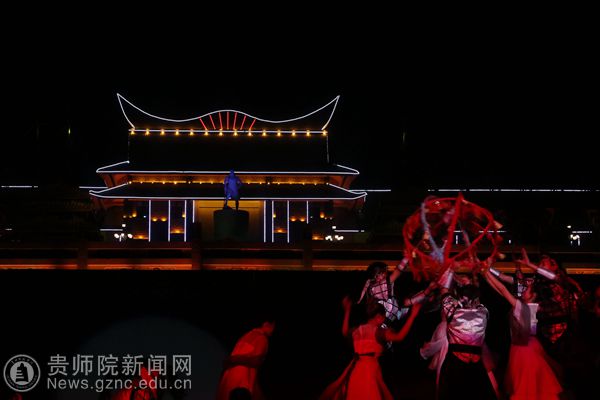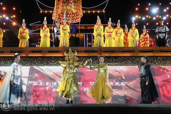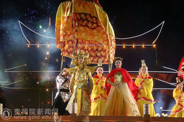 本网讯 受六盘水市六枝特区人民政府邀请,11月9日至12日,伟德官网艺术学院213名师生携带大型实景山水剧《夜郎传奇》赴牂牁江畔参加六盘水市第四届文化旅游发展大会,为现场的嘉宾和观众献上了一场精彩的视觉盛宴。六枝微信网进行现场同步直播,近十万观众进行网络收看。