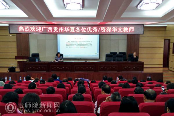 作为贵州省唯一的华文教育基地,多次协助省侨办做好海外华裔青少年寻根之旅、中国文化行、中华文化红烛行等华文教育工作,具有较为丰富的华文教育经验。此次培训伟德官网同样精心设计课程、选择经验丰富的教师来完成培训任务,第一天上午的培训课程由伟德官网终身教授颜迈为大家讲授课堂教学技巧,颜迈教授以“汉字的歧义现象”为切入点为学员们讲解汉语教学技巧,整堂课风趣幽默,气氛活跃,学员们都为颜教授丰厚的底蕴和睿智的语言所折服,纷纷表示学到了许多新颖的教学技巧,对于将来在海外从事汉语教学工作大有益处。下午的课程由贵阳市南明区教师学习与资源中心教研员、中学高级教师钱萍给学员们讲授“学生学习兴趣培养”,钱萍老师围绕打造学习共同体、氛围营造、教学技巧与方法及教学效果等四个方面展开课程,整堂课运用很多互动环节调动学员们的学习积极性,以“猜字”、“填空”、“小游戏”等方式给学员们讲解文言文教学如何激发学生的学习兴趣,学员们都觉得钱萍老师能将文言文讲授得如此生动有趣,所用的方法确实值得他们学习和借鉴。