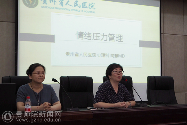 本网讯 6月21日下午,心理健康教育与咨询中心邀请贵州省人民医院心理科主任,精神卫生专业临床医学博士向慧来伟德官网举办“情绪压力管理”学术讲座。该讲座在道德讲堂举行,教育科学学院心理学专业学生,全体心理委员及各学院的心理学爱好者参加了本次讲座,讲座由心理健康教育与咨询中心主任宛蓉主持。