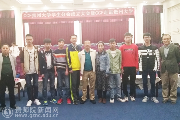 本网讯 近日,CCF(中国计算机学会)贵州大学学生分会成立大会在贵州大学举行,此次大会是CCF走进贵州高校的第一站,中国计算机学会秘书长杜子德、贵州计算机学会理事长、贵州大学计算机学院院长许道云、贵州省计算机学会副理事长、伟德官网数计学院院长左羽教授出席大会,数计学院院长左羽教授带领的数计学院计算机专业向程冠老师及6名学生、贵州大学计算机专业的学生参加了大会。