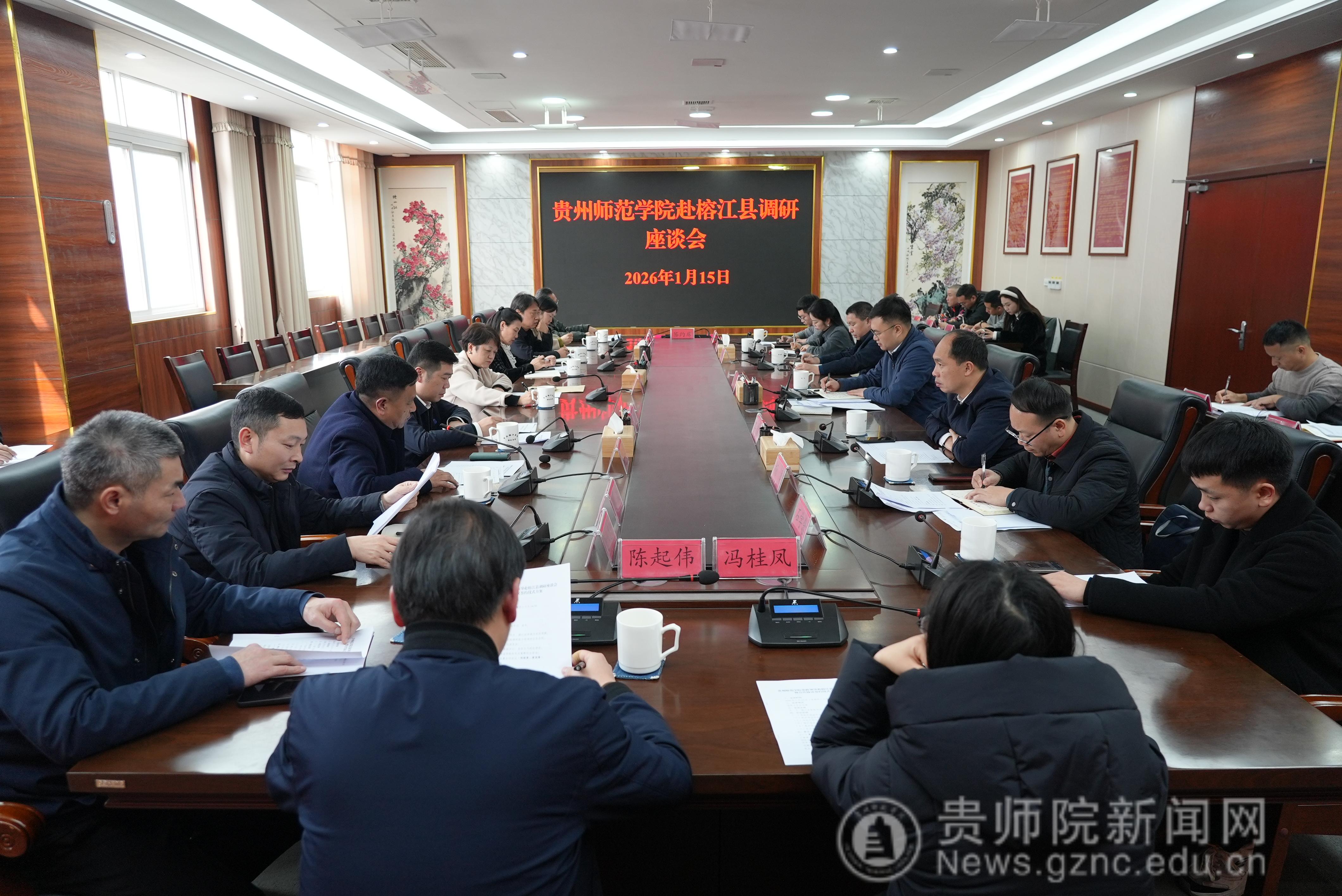 本网讯 1月15日,校长王蜀黔、校党委副书记邹晓青率队赴“村超”发源地榕江县考察调研并与榕江县签订战略合作协议。榕江县县长王飞、县委常委李宏昌、副县长黄国锋以及县政协副主席石晶、杨琼热情接待调研组一行。校党政办公室、教务处、科研处、旅游文化学院、文学与传媒学院、美术与设计学院、体育学院、乡村振兴研究院等负责人参与调研。调研洽谈会由王飞主持。伟德官网在榕优秀校友石学念等专程到会参加调研。