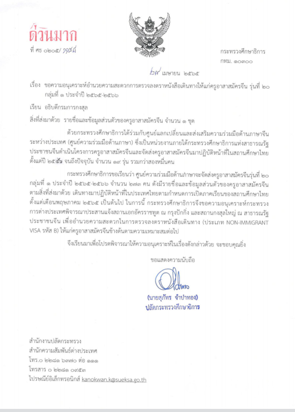 其中,柏雨谷与罗甜甜为2022年赴泰志愿者储备人员,已收到泰国教育部发出的邀请函。目前,两人正在参加语合中心委托北京语言大学统筹的赴泰国际中文教育志愿者岗前线上培训,预计将于6月底派出。