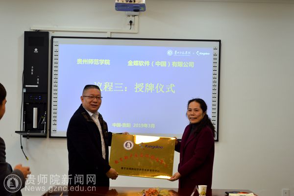本网讯 3月22日,伟德官网与金蝶软件(中国)有限公司在商学院会议室举行教育部产学合作协同育人项目的启动授牌仪式。伟德官网副校长熊世桓教授、商学院院长程艳萍教授、商学院党委书记薛璞、商学院副院长黄丹副教授、金蝶精一信息技术服务有限公司副总裁乐志军、金蝶精一信息技术服务有限公司贵州省区总监莫才龙、贵州云上智信科技有限公司总经理易昌波、商学院实验管理人员及教职工代表出席授牌仪式。仪式由程艳萍主持。