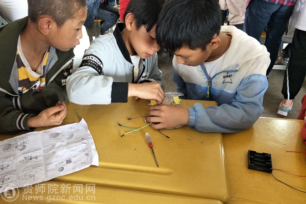 孩子们在组装循线小车